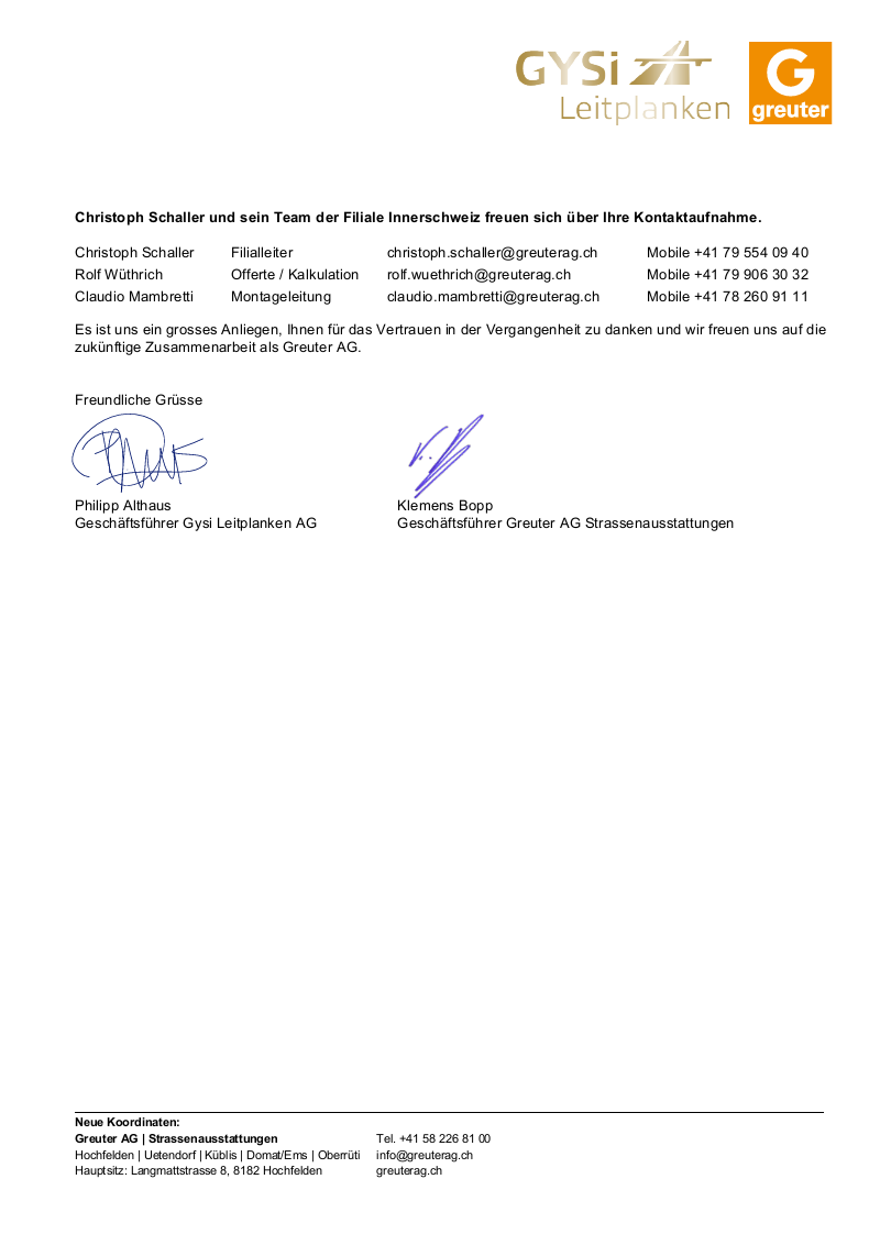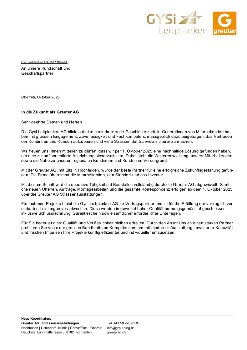 Neue Koordination ab 01.10.2025: greuterag.ch